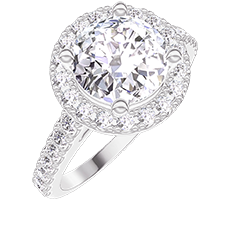Ring White gold 18 carats - Lab-grown diamond Round 1 Carats - Halo Lab-grown diamond - Setting Lab-grown diamond