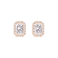 Earrings Pink gold 9 carats - Laboratory Diamond Baguette 0.3 Carats (2 X) - Halo Laboratory Diamond