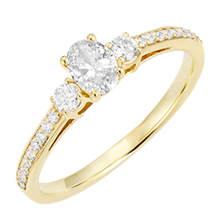 Ring Yellow gold 9 carats - Laboratory Diamond Oval 0.3 Carats - Ring settings Laboratory Diamond - Setting Laboratory Diamond
