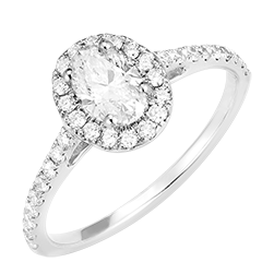 - Features a 0.5 ct oval synthetic diamond surrounded by 33 synthetic diamonds