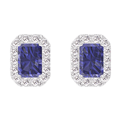 « L'ATELIER » NO. 201288Earrings White gold 9 carats - Blue Sapphire Baguette 0.3 Carats (2 X) - Halo Diamond white