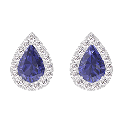 Earrings White gold 18 carats - Blue Sapphire Pear 0.3 Carats (2 X) - Halo Diamond white
