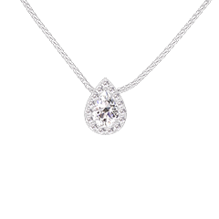 Necklace White gold 9 carats - Laboratory Diamond Pear 0.3 Carats - Halo Laboratory Diamond - Chain Venetian