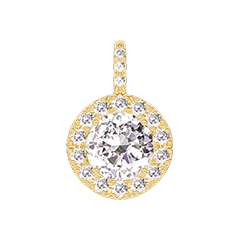 Pendant Yellow gold 9 carats - Diamond white round 0.3 Carats - Halo Diamond white - Setting Diamond white - No Chain
