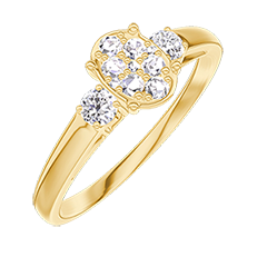 Ring Yellow gold 18 carats - Cluster of natural diamonds Oval equivalent 0.5 - Ring settings Diamond white