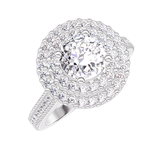 « L'ATELIER » NO. 406935Ring White gold 18 carats - Lab-grown diamond Round 0.5 Carats - Halo Lab-grown diamond - Setting Lab-grown diamond