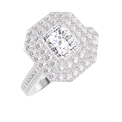 « L'ATELIER » NO. 406945Ring White gold 9 carats - Lab-grown diamond Baguette 0.5 Carats - Halo Lab-grown diamond - Setting Lab-grown diamond
