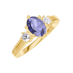 Ring Yellow gold 18 carats - Blue Sapphire Oval 0.5 Carats - Ring settings Diamond white