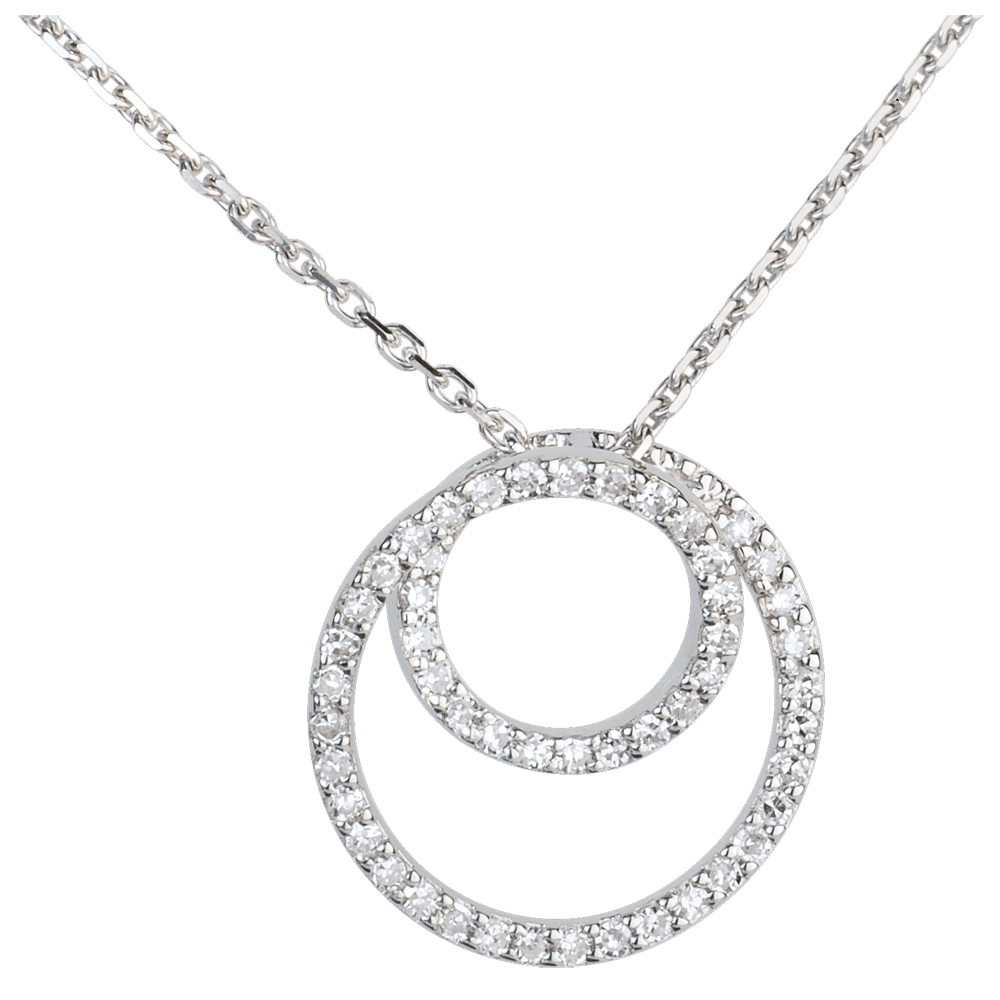 A curve perfectly unfolds to create two white gold circles encrusted with diamonds.
