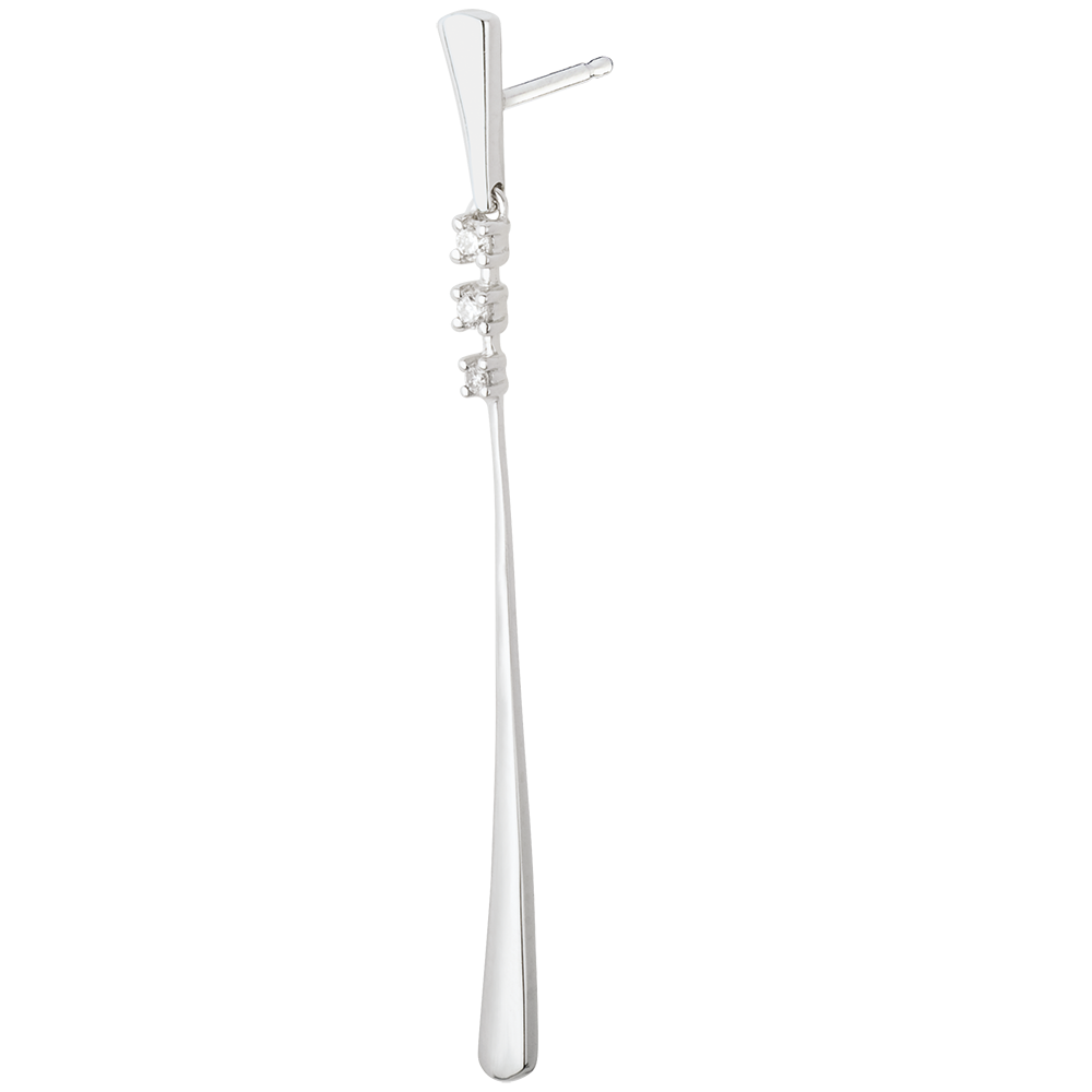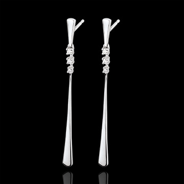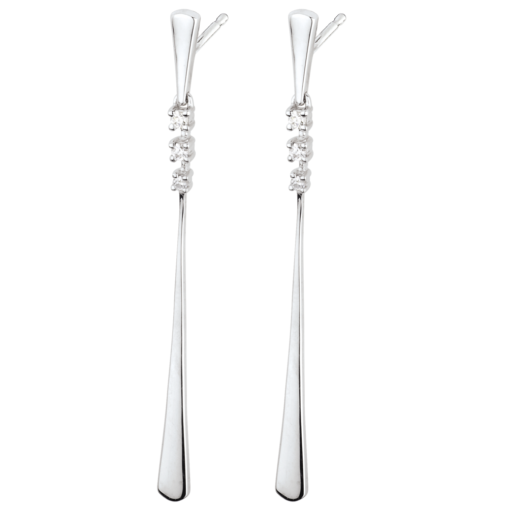 A pair of drop earrings in white gold with diamonds which gently sway .