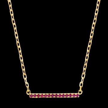 A striking line of fourteen intensely red rubies set on a delicate yellow gold chain.A minimalist yet powerful necklace that captures the light with fiery brilliance.