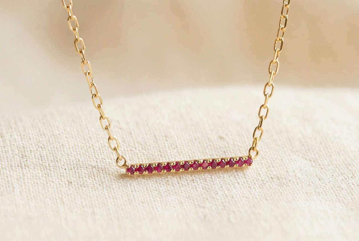 Ardent Necklace – 9ct Yellow Gold and Synthetic Rubies