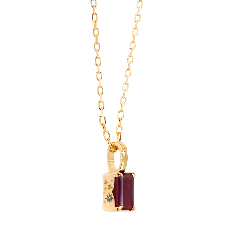 OISEAU DE PARADIS NO. 22Necklace - Yellow gold 9 carats - Synthetic ruby, Lab-grown diamond ID : 3888
