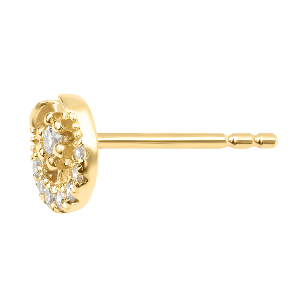 These 9 carat yellow gold stud earrings feature a delicate pavé circle design, each set with sixteen lab-grown diamonds that softly catch the light. The refined craftsmanship ensures a subtle yet radiant sparkle.