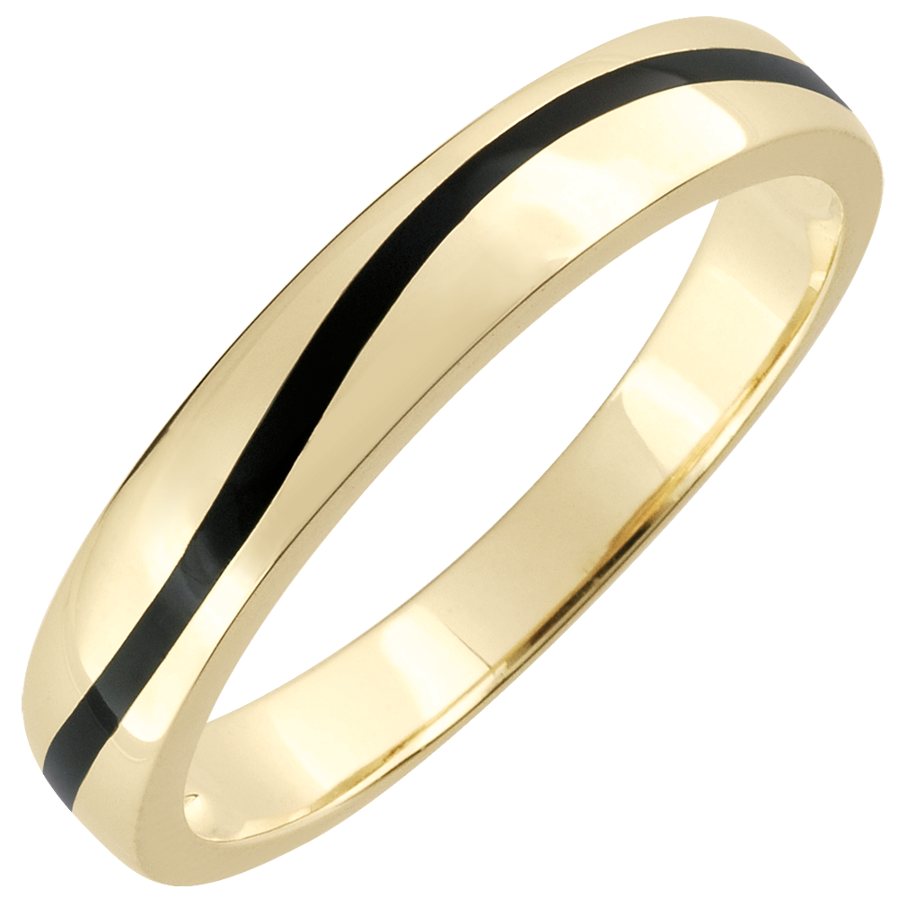 Wedding Ring Men Clair Obscure - Curve - yellow gold and black lacquer - 9 carat