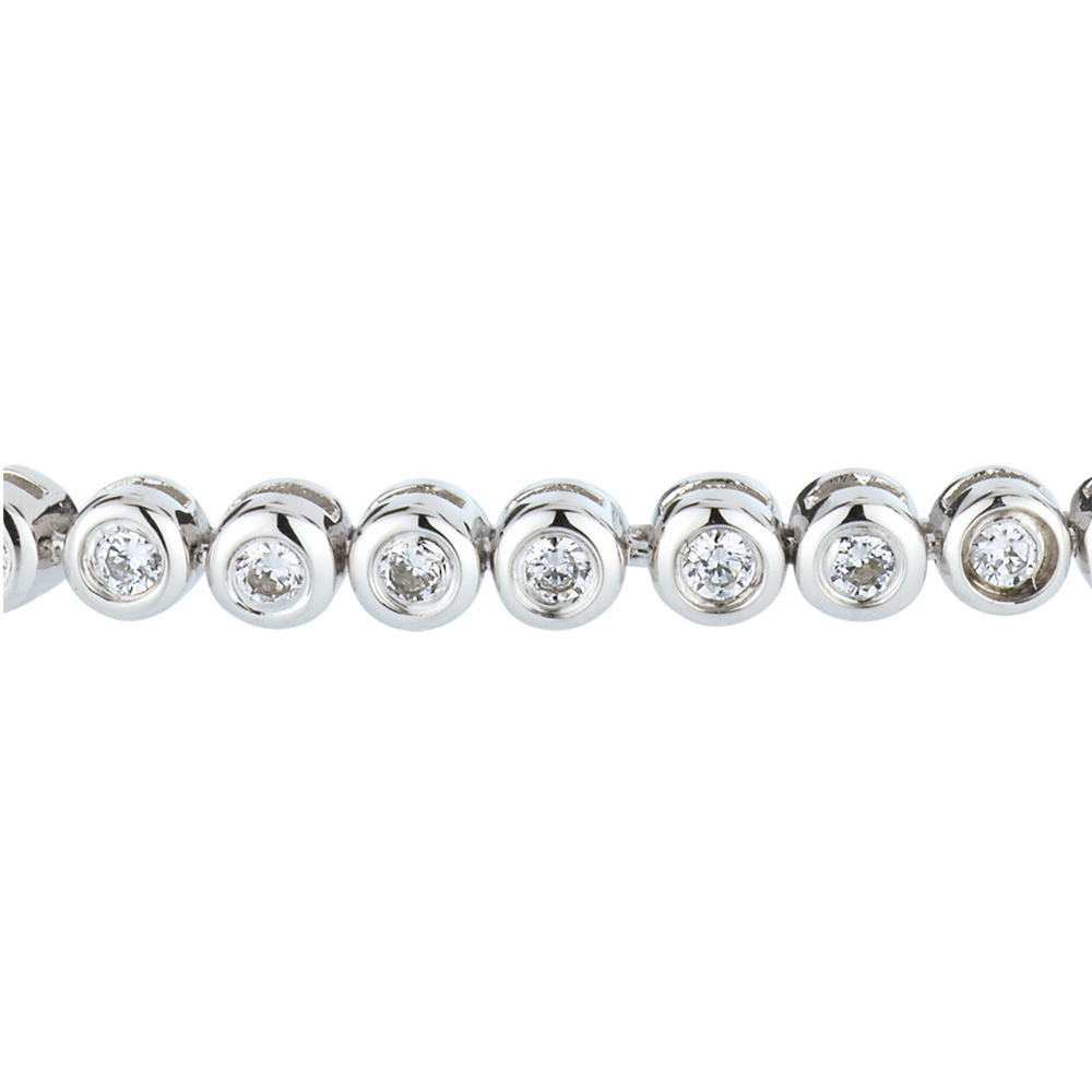 This tennis bracelet of round, encased diamonds defines elegance and perfection.