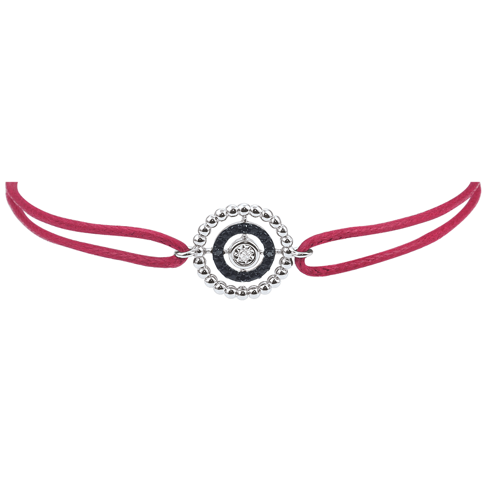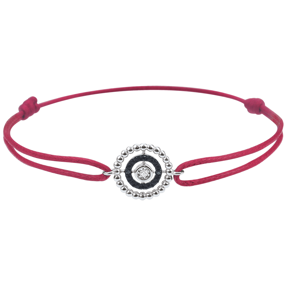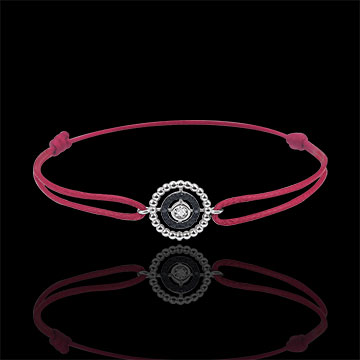 Bracelet Salty Flower - circle - white gold and diamonds - red cord