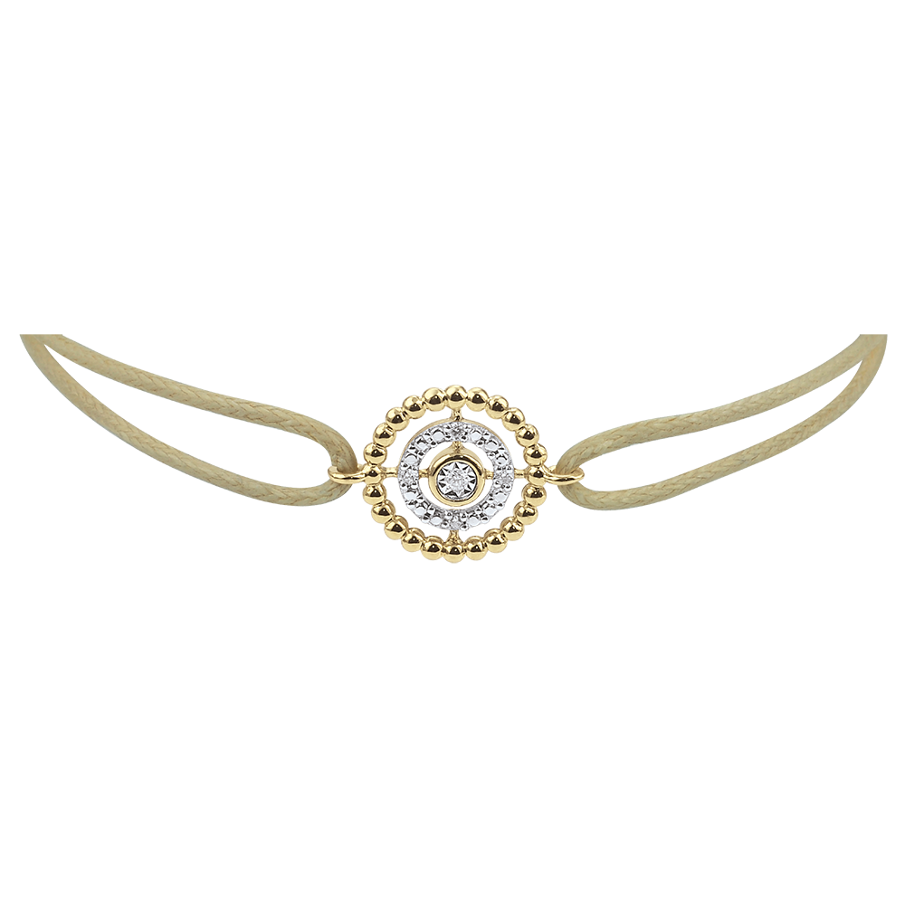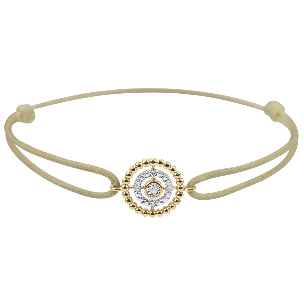Bracelet Salty Flower - circle - yellow gold - beige cord