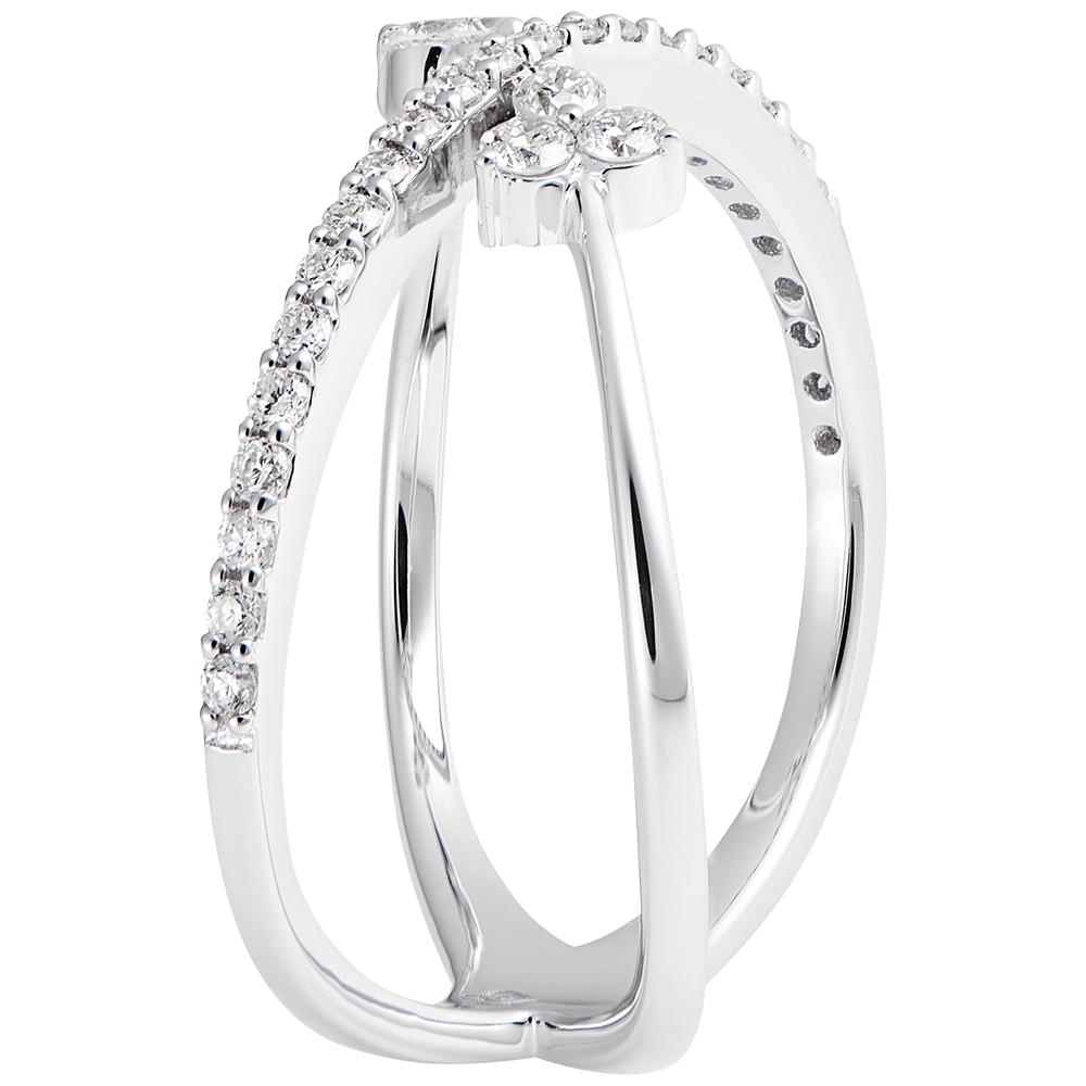 A light and contemporary mount that dresses the finger, composed of 2 elipses in white gold and paved diamonds