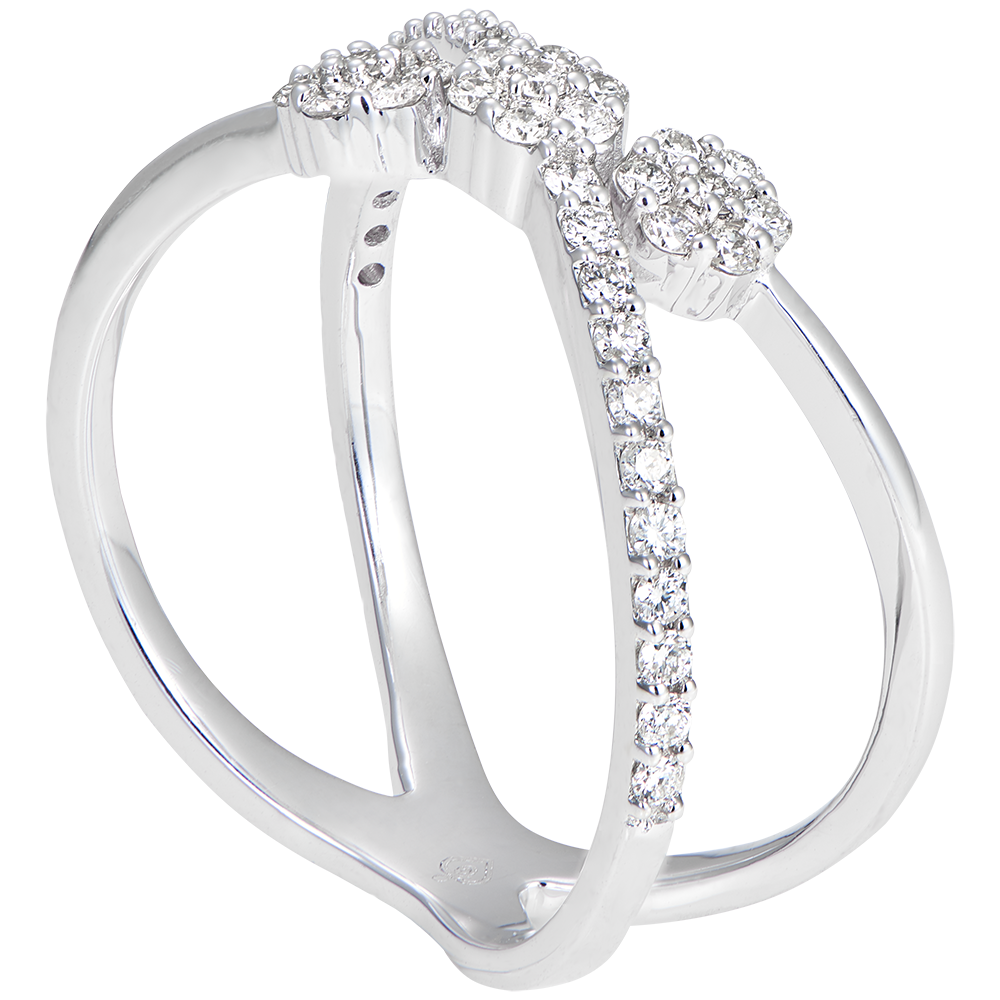 A sober and minimalist mount sublimated by a diamond pavement and raised with 3 diamond clusters