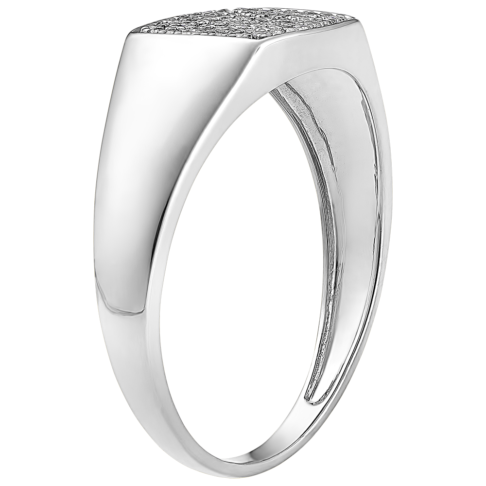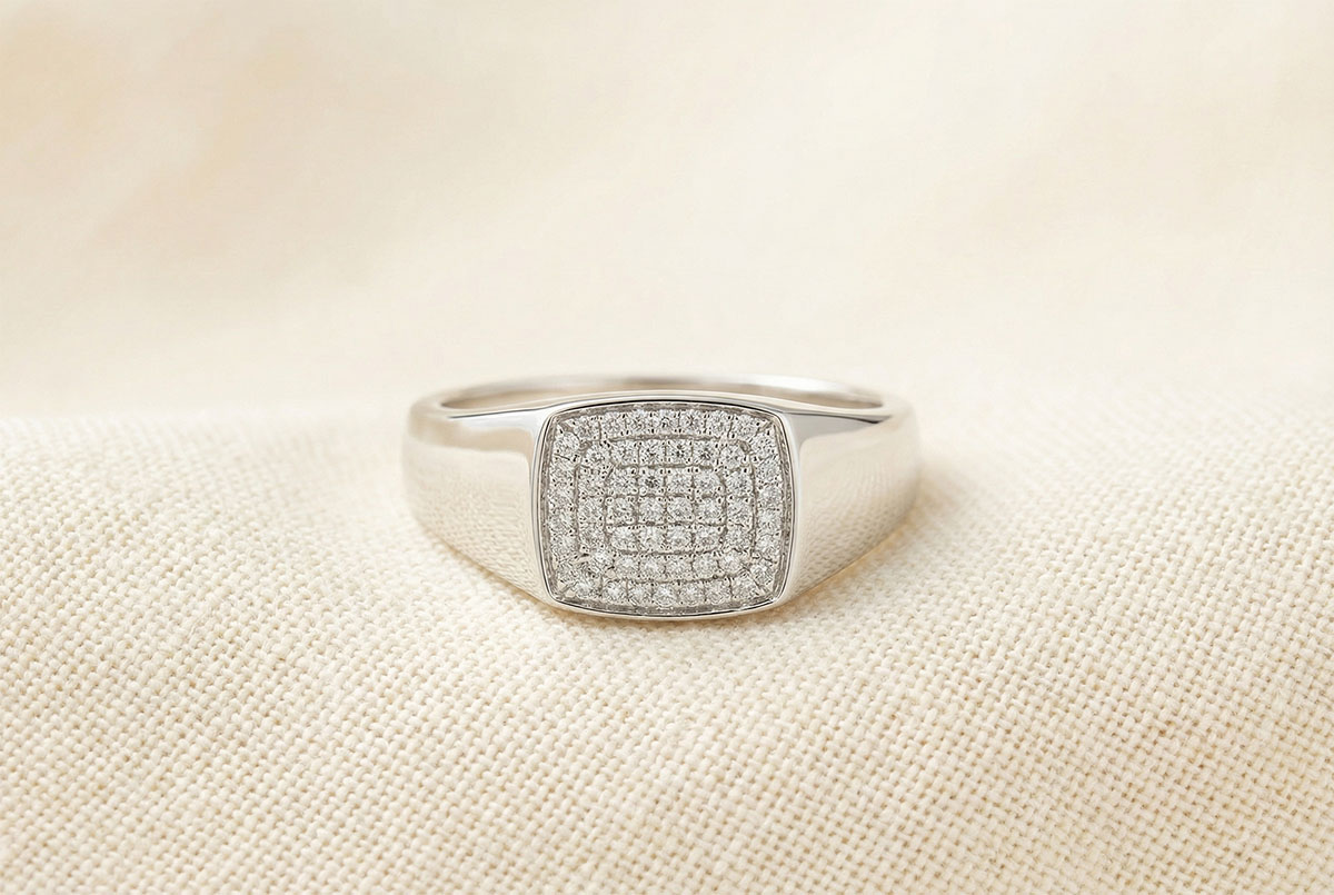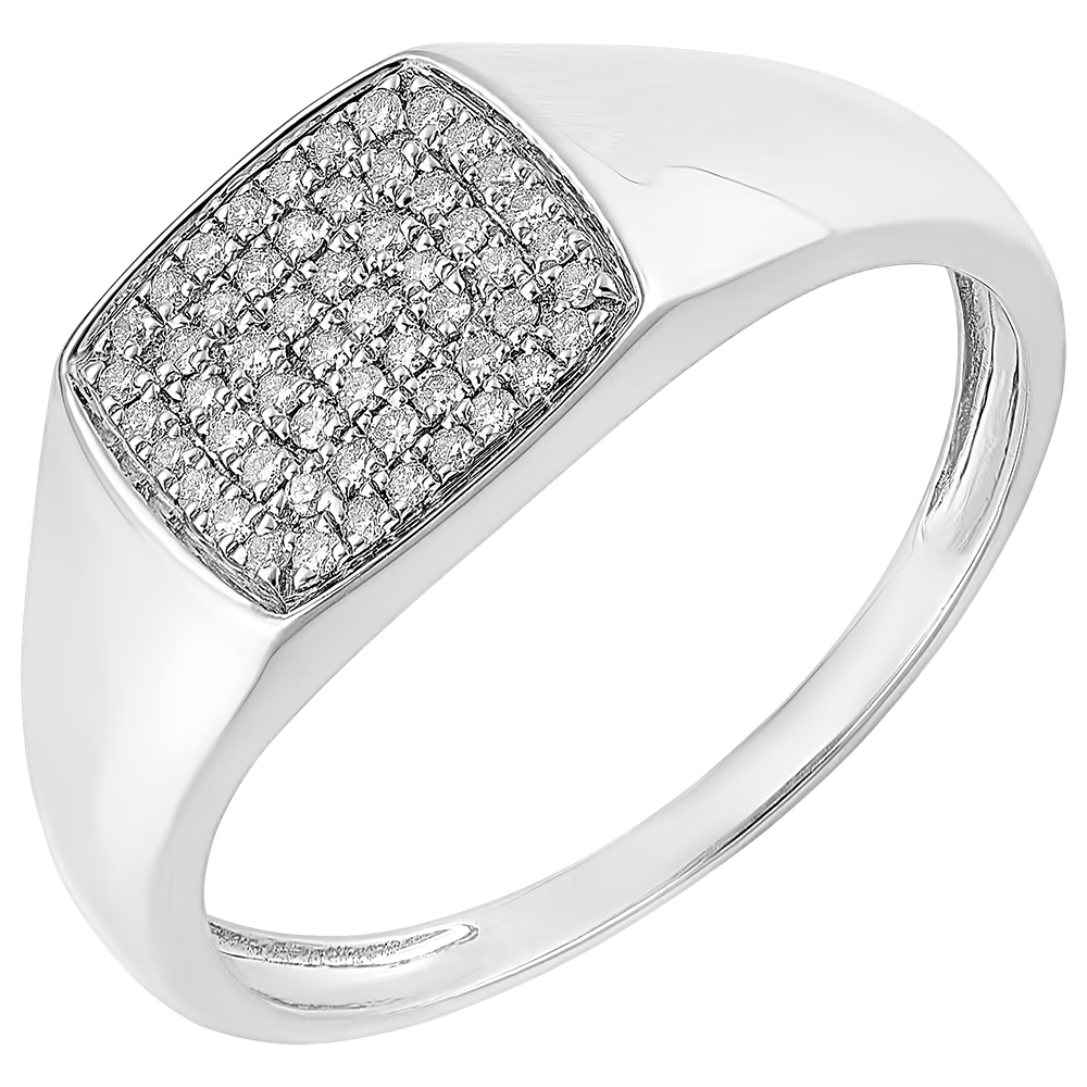 A white gold signet ring with a base generously paved with 56 diamonds