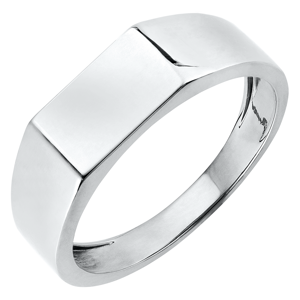 A white gold signet ring with a rectangular base. A simple yet elegant jewel.