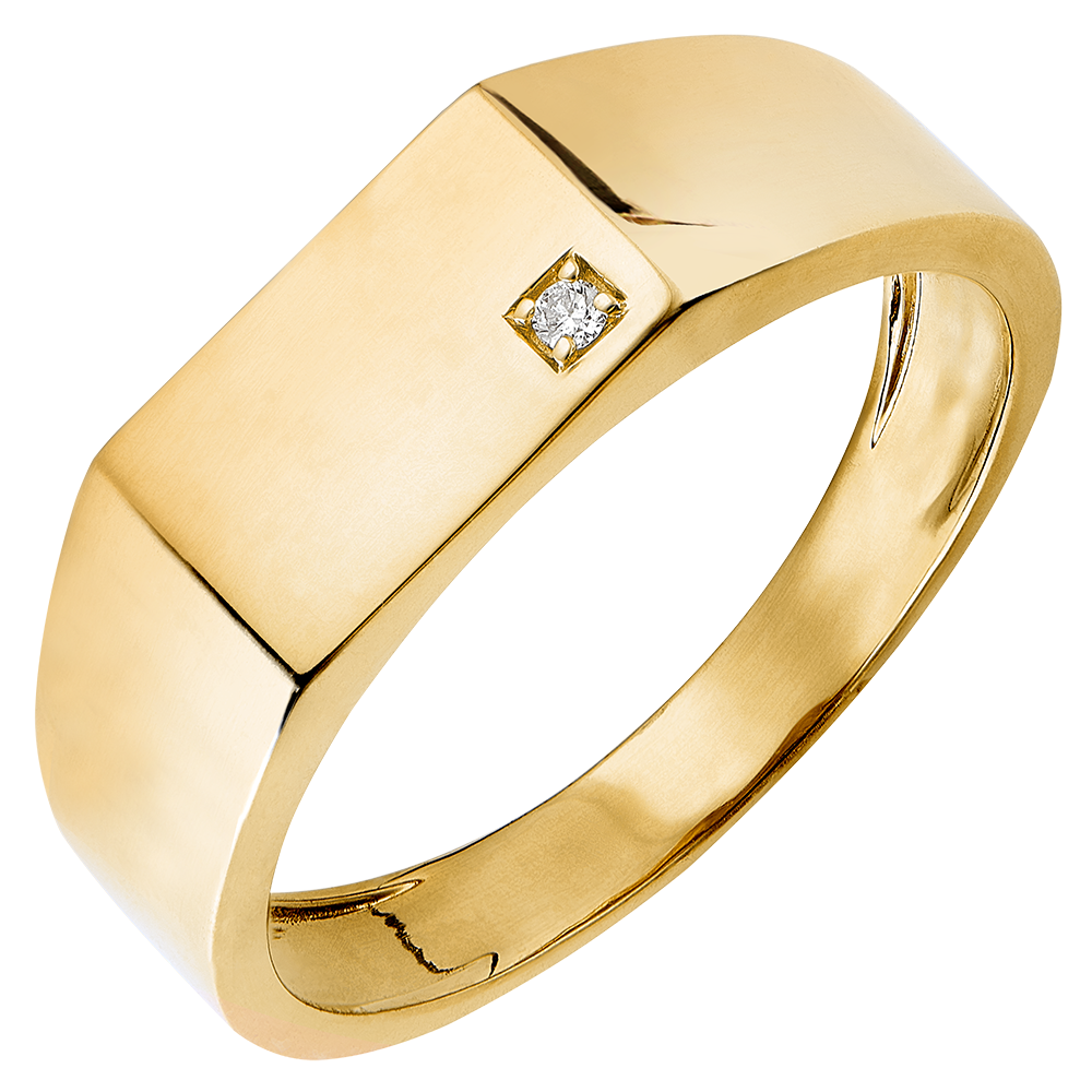 A yellow gold signet ring with a rectangular base paved with a sparkling diamond. A very modern jewel.