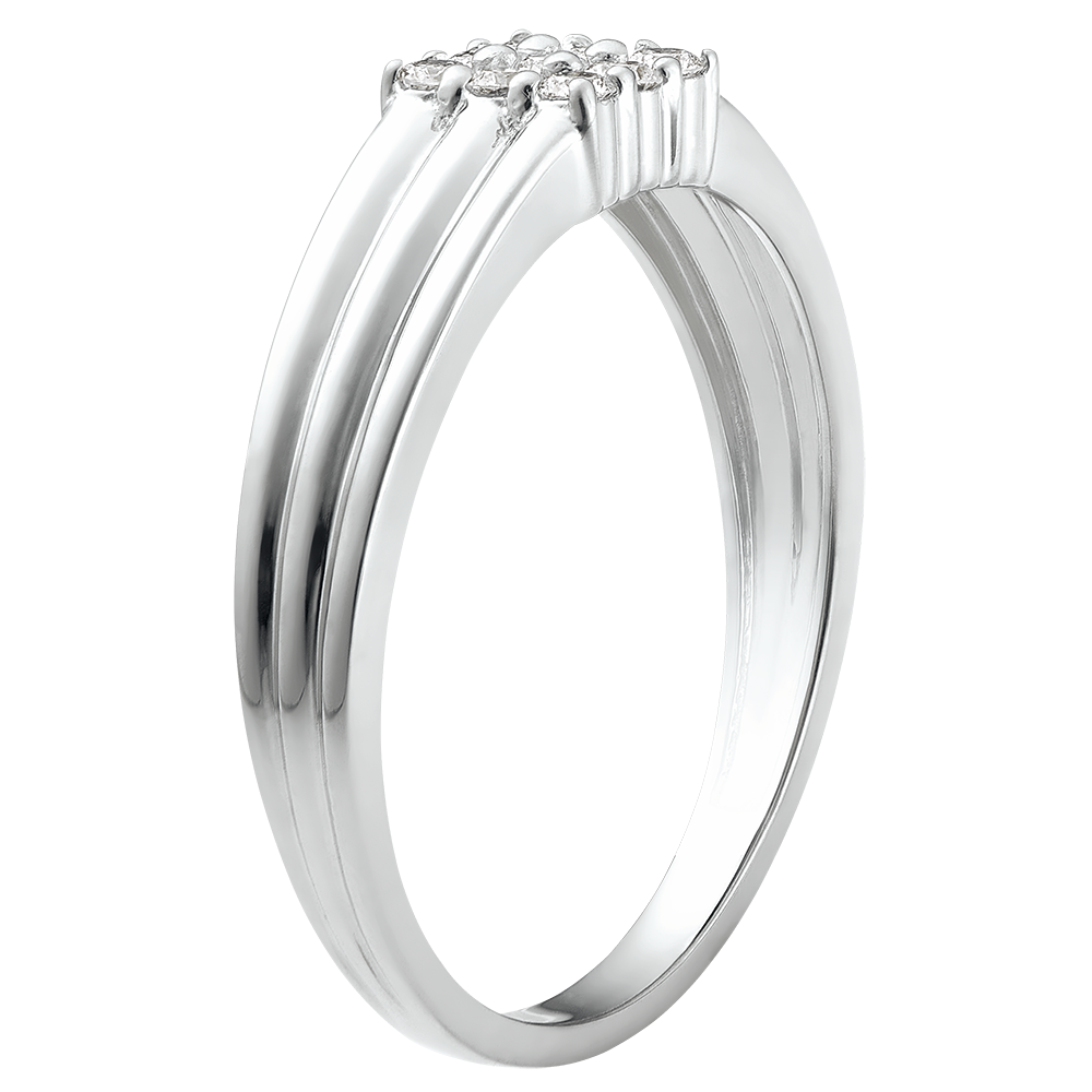 A white gold band carefully crafted and topped with a 9 diamonds square.…