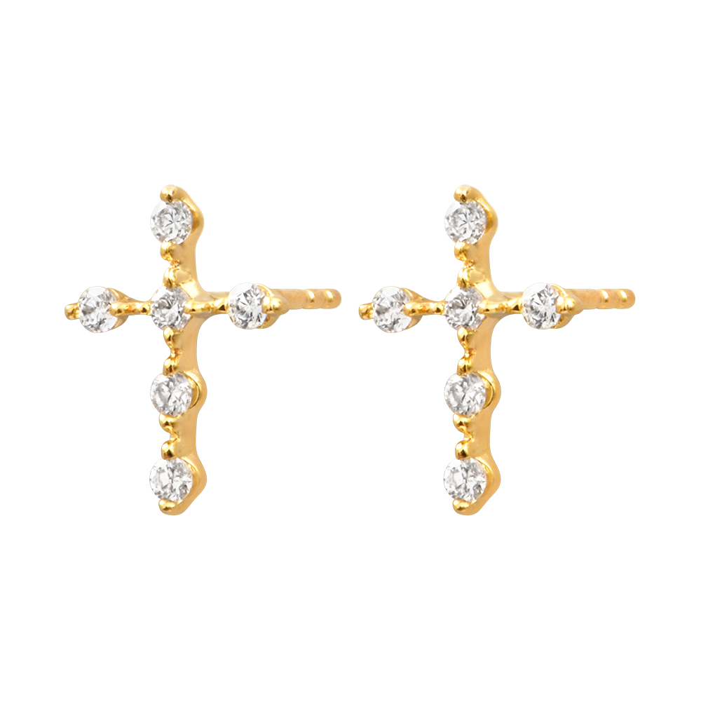ORIGINE NO. 47Stud Earrings Cross - Yellow gold 9 carats - Lab-grown diamond ID : 1585
