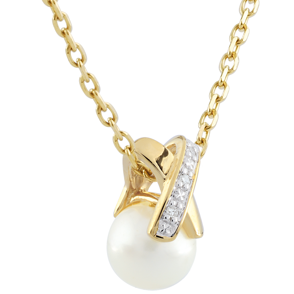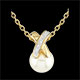 A gold diamond cross hugs a pearl.