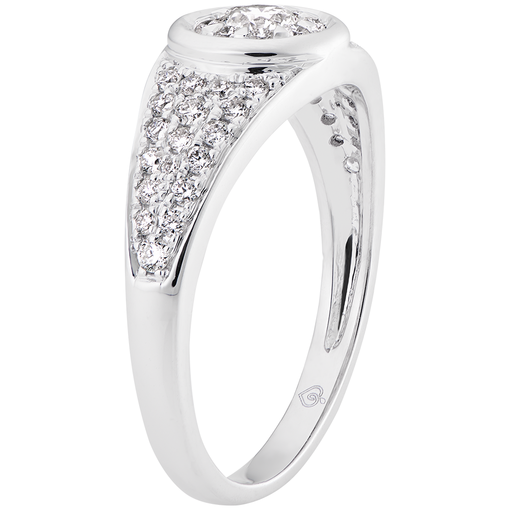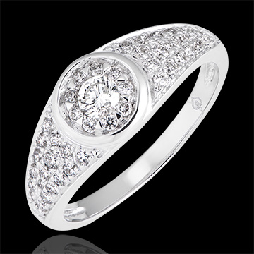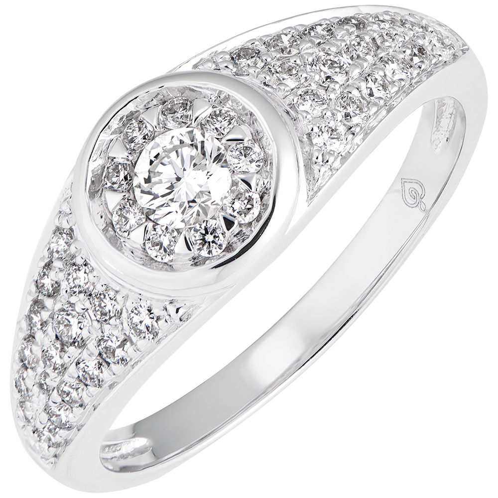 A paved mount with its center diamond having halo diamonds, which elegantly echoes the classic codes of jewelry 46 diamonds : 0.47 carat - White gold (9K Gold = 375/-): 2.6 g. Cluster of natural diamonds : 46 - More dimensions