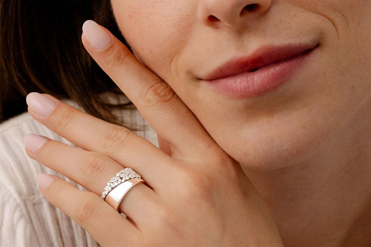 A design with character that combines with boldness and prestige the sobriety of polished gold paving diamonds.