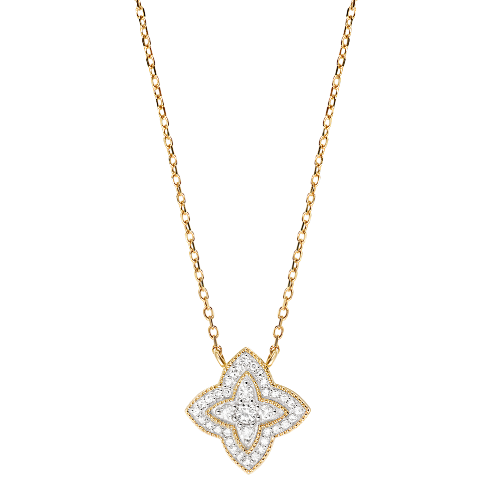 Diamond Flower Necklace - 9 carat White gold and yellow gold with diamonds