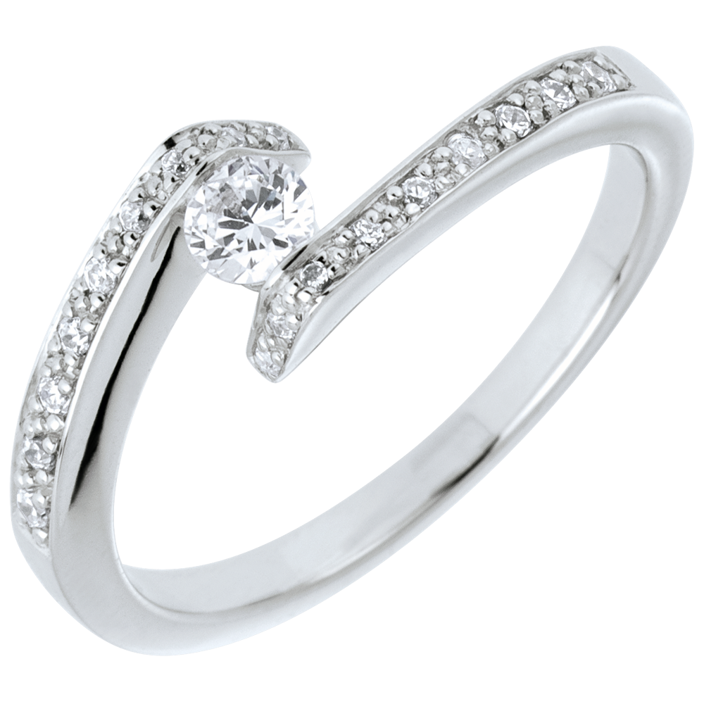 Solitaire Ring Precious Nest - Set Shoulders - Promise - white gold - 0.15 carat diamond - 18 carats
