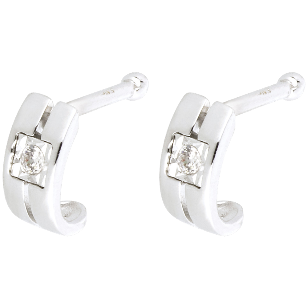 The sleek, contemporary design of a pair of solitaire half-moon hoop earrings with two rows of gold.2 diamonds : 0.03 carat - White gold (18K Gold = 750/-): 1.20 g.