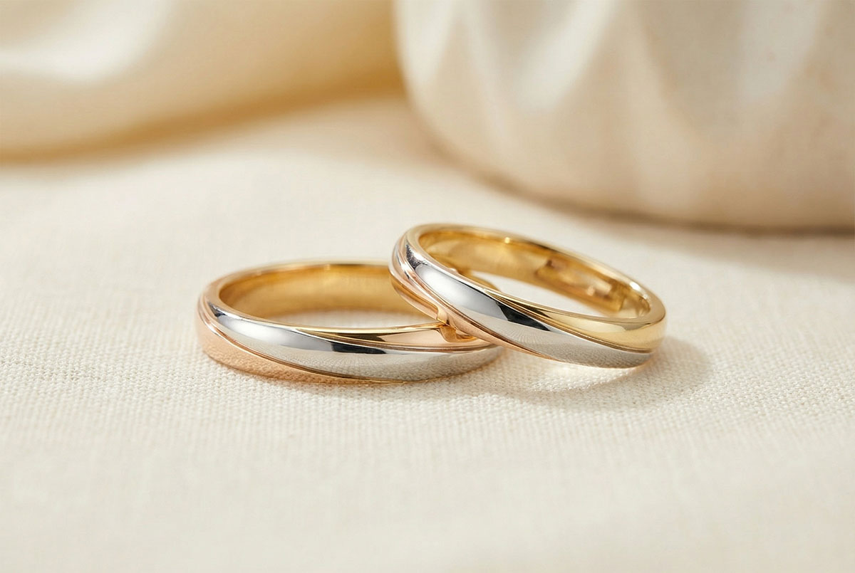 Elegance and beauty for an everlasting wedding ring in three golds.