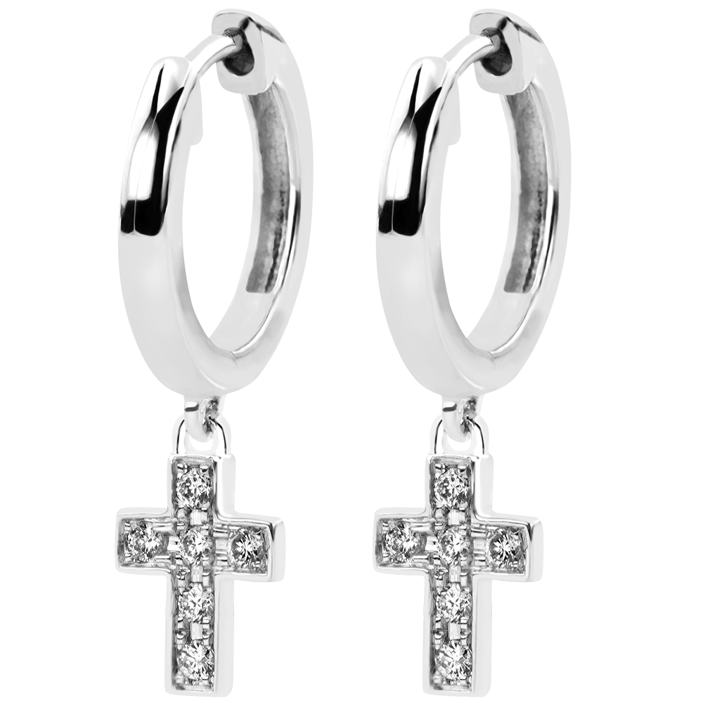 Earrings Abundance - Diamond Cross - white gold 9 carats and diamonds