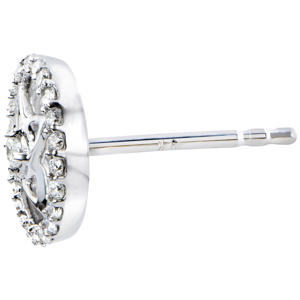 A delicate vintage touch for this pair of earrings composed by a central diamond fixed on a diamond paved frame with a star motif. A very delicate and feminine jewel. 48 diamonds : 0.26 carat - White gold (9K Gold = 375/-): 1.6 g. More dimensions