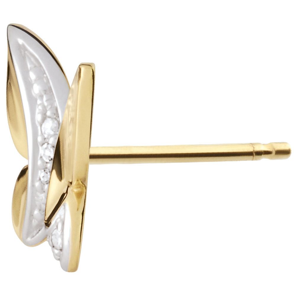 Two graceful butterflies are drawn in yellow gold and diamonds to pose as ornaments