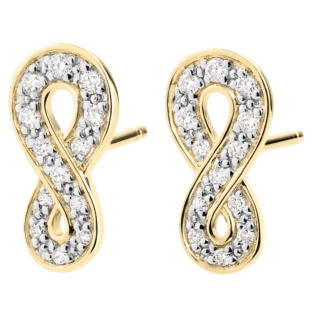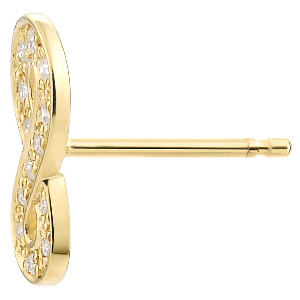 An infinity sign in yellow gold set with diamonds mounted in studs. It is the symbol of absolute eternity.