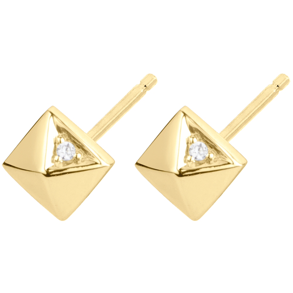 Inspired by the shape of a rough diamond, these precious pyramids, one wearing a diamond facet are stylish and modern