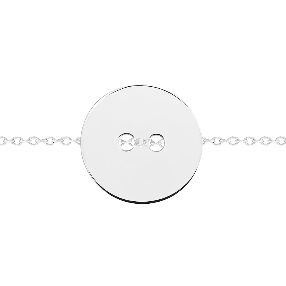 This white gold 9 carat bracelet combines refined elegance with personalized engraving options through its unique button design. Its minimalist style suits any occasion with subtle sophistication.