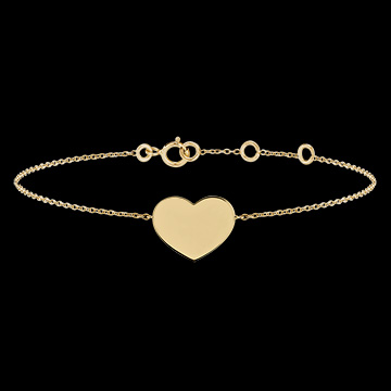 This 18-carat yellow gold bracelet features a polished heart-shaped medallion, combining minimalist elegance with personal meaning.