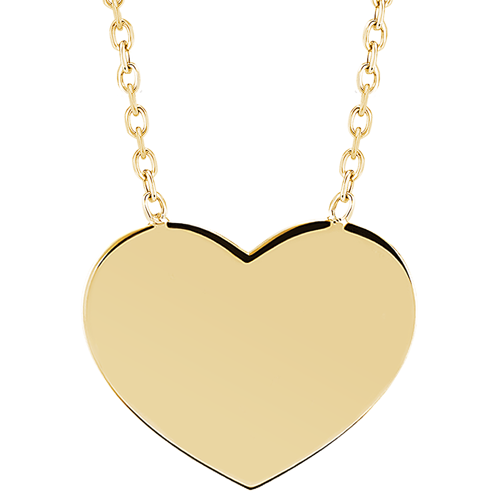 This 9K yellow gold necklace offers a minimalist and elegant design, featuring a heart-shaped medal ready to be engraved with your personal message.
