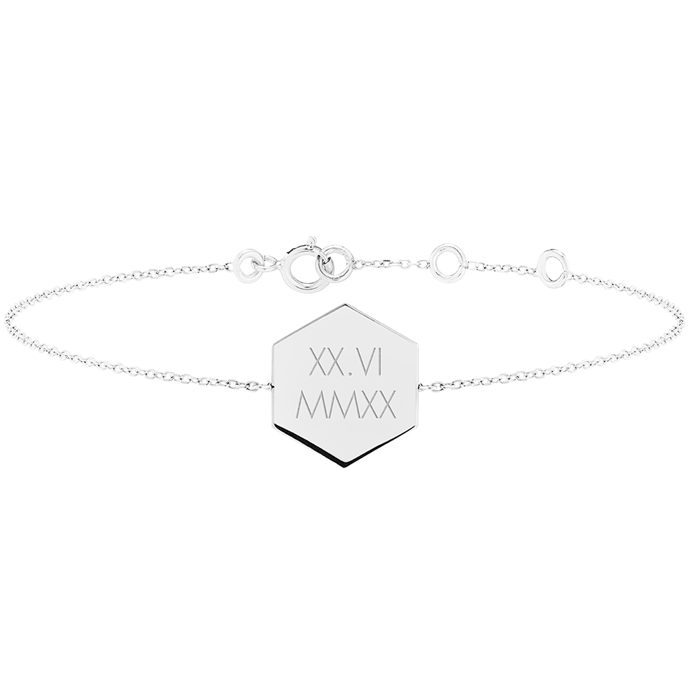 ABC YOURS NO. 5Hexagonal engraved medal bracelet - White gold 9 carats ID : 4938