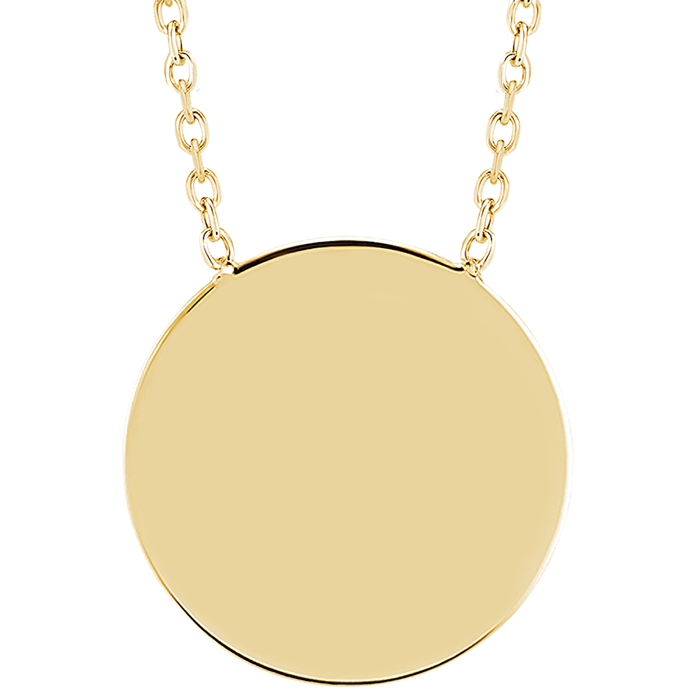 This 18K yellow gold necklace combines elegance and simplicity, offering a minimalist piece perfect for everyday wear. The round medal is designed to be engraved, making each necklace uniquely personal.