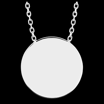 Round medal necklace to be engraved - White gold 18 carats