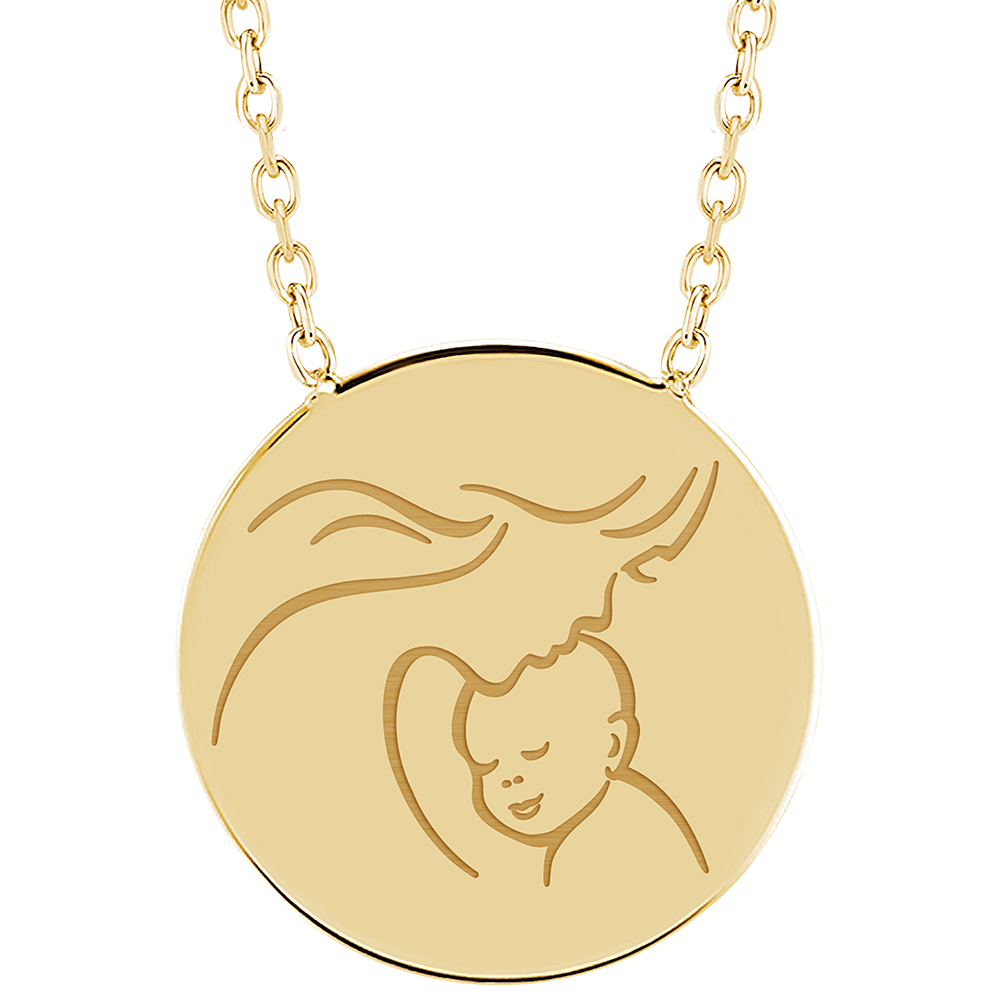 Necklace with engraved round medallion - Yellow gold 9 carats
