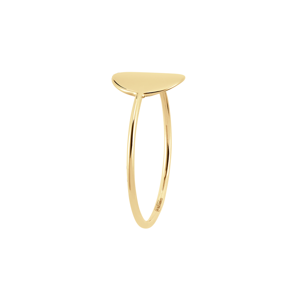 The Edenly Yours No. 23 ring is a delicate piece crafted in 18K yellow gold, designed for personal engraving. Its smooth round medallion offers a perfect canvas to inscribe meaningful messages or symbols.