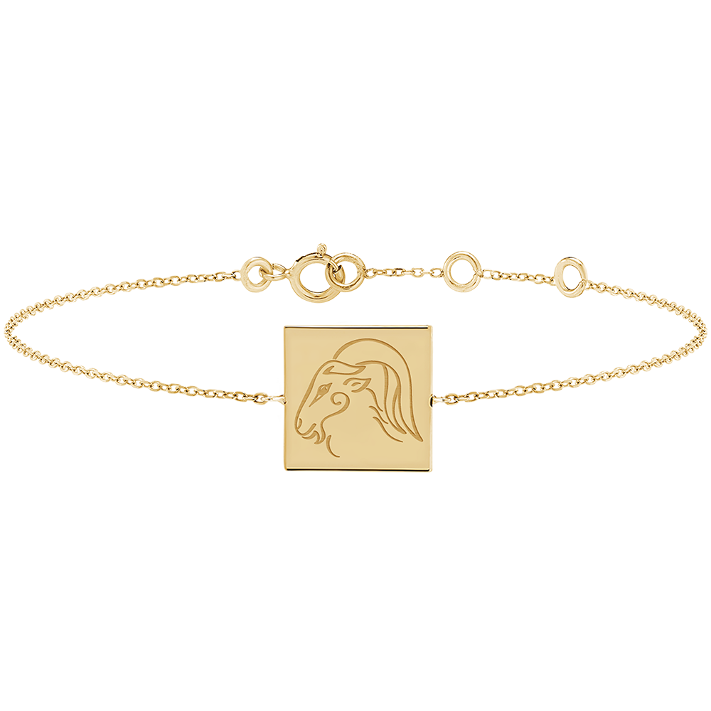 ZODIAC YOURS NO. 6Square engraved medal bracelet - Capricorn - Yellow gold 9 carats ID : 4902